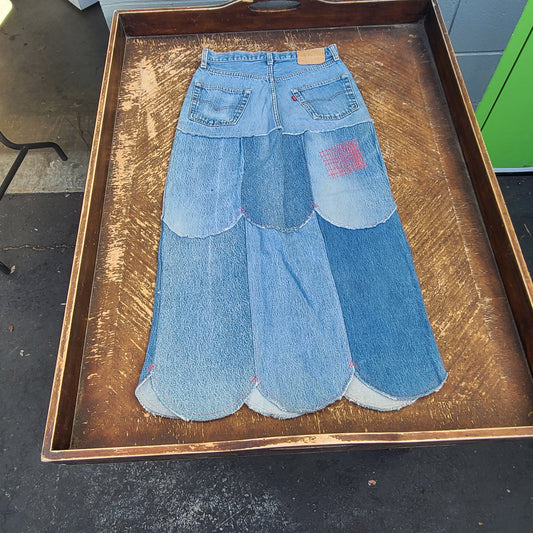 Light Wash Long Frayed Hem Denim Skirt